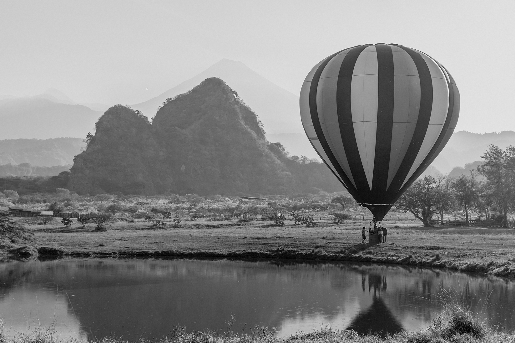 The specific hour is mandatory as flights take advantage of the cool morning air currents that gently sweep the balloon out of the valley, but not before gliding feet above the misty lagoon waters. Just as the sun crests the eastward ridgeline the balloon ascends toward the heavens as a golden sunrise spreads across the ranch below, and illuminates El Volcán de Fuego, bringing guests face to face with the magnificent mountain of fire.