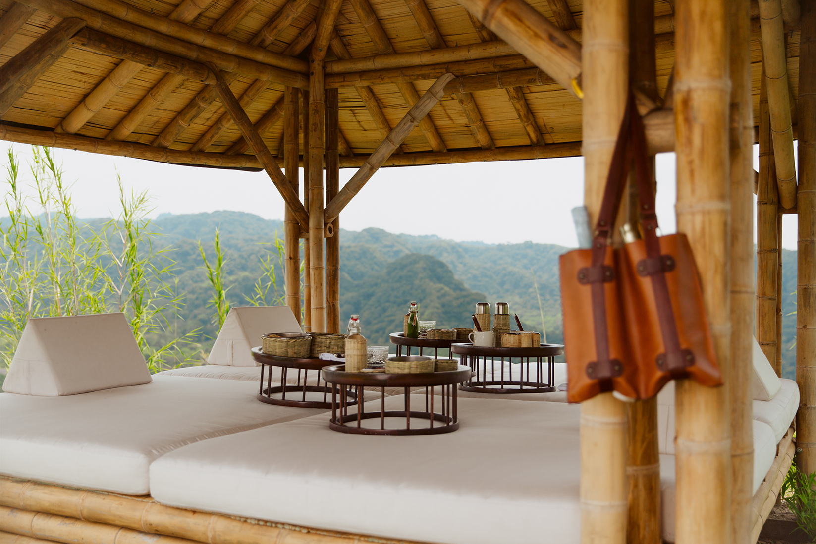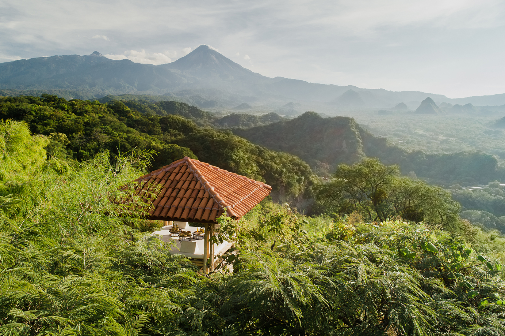 Venture across the river valley adjacent to Hacienda de San Antonio where a guide will lead you on a short yet invigorating ascent up into the hills, looking out over the surrounding highlands. Atop one of the highest points awaits a beautifully constructed bamboo lounge, carefully set with either an organic breakfast, fresh juices and coffee, or evening hors d'oeuvres to accompany freshly made cocktails. At sunrise or sunset, while lounging in this dream setting, guests can count on enjoying an unparalleled panoramic vista over Rancho Jabalí, El Volcán de Fuego and the Hacienda.